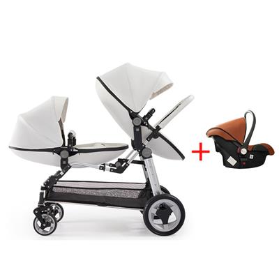 Fast shipping ! Luxury twins stroller aluminum frame leather twin  pram baby can sit and lying with car seat double stroller